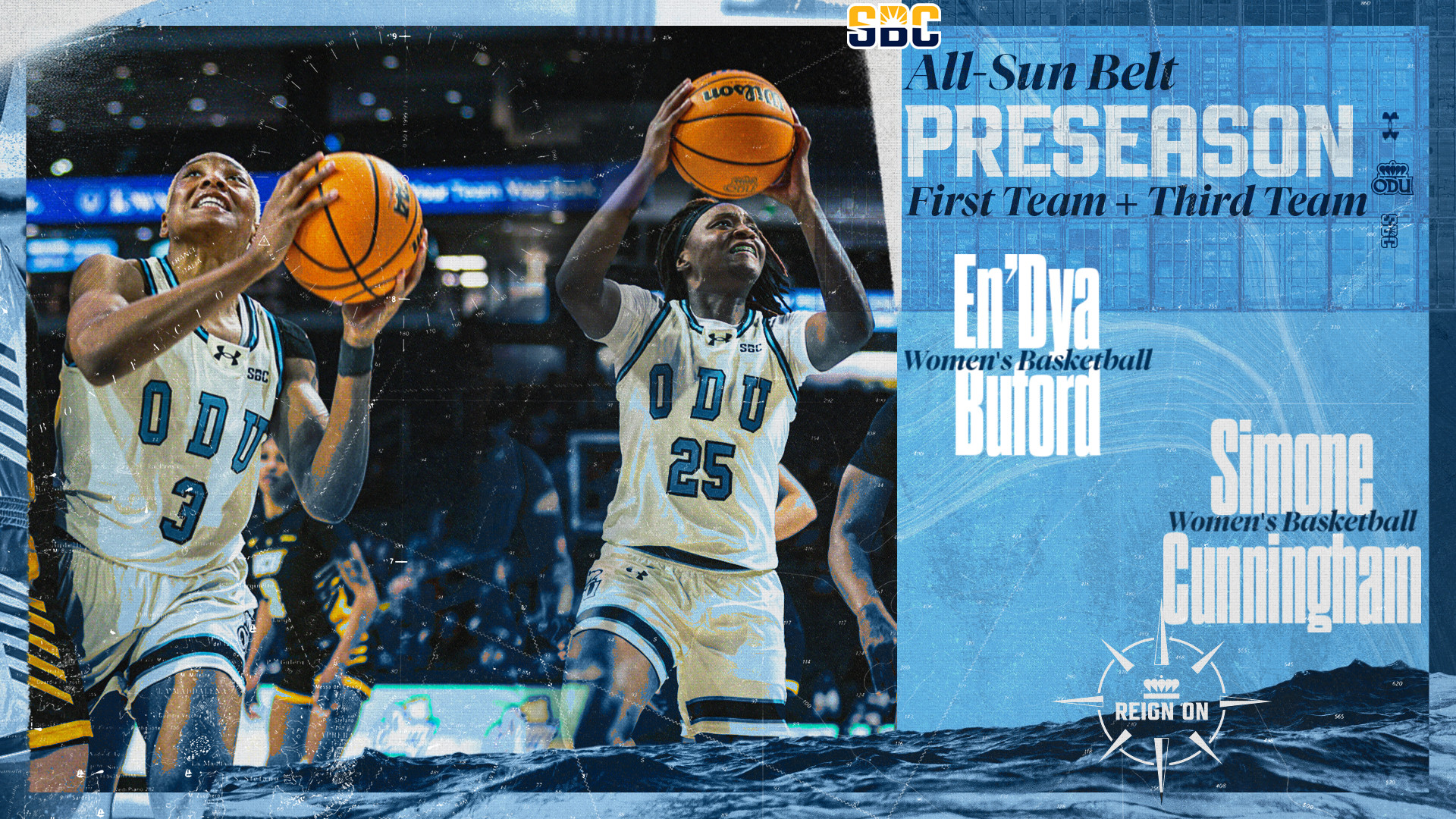 Old Dominion women’s basketball’s En’Dya Buford has been named to the Sun Belt Preseason First Team and Simone Cunningham has been named to the Sun Belt Preseason Third Team,